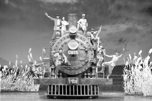 “火车”作为铁道游击队主要的战斗场景,将出现在“序幕”、“打票车”以及“尾声”中,其中“打票车”这场戏的火车车厢是表现最充分的,快速运动的背景和车上晃动的人,营造出“爬上飞快的火车,像骑上奔驰的骏马”的强烈现实感。剧中使用的道具火车头和车厢,重达数百公斤,将由5辆集装箱货车运送至成都,是该剧最大、最重的道具。该剧中使用的大部分道具,由舞美设计人员亲自赴鲁南地区的农村、还原后的影视城以及纪念馆等,实地考察后制作。(记者 任宏伟)