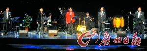 本报讯 (记者 范协洪/文 邵权达/图)前晚,中国最负盛名的男声重唱组合“八只眼”的演唱会在广州大剧院举行。对于首次登上广州大剧院的舞台,其灵魂人物、超级“低音炮”松鹿就直言:“我们希望每当有一座新的剧院,我们就有机会去那里演唱。”前晚演唱会的曲目,可谓“古今中外”一网打尽:不仅有《海港之夜》、《恰似你的温柔》等中外经典,还有像《传奇》、《青花瓷》这样的近年大热流行歌。最让全场沸腾的,是翻唱自日本上世纪80年代流行金曲的歌曲《男子汉宣言》,让现场观众笑声不断。