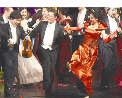 信报讯(记者张学军) 谁见过余隆跳舞?看过上周末这场《风流寡妇》的观众可算是开眼了。别看站在指挥台上,一根小小的指挥棒被余隆耍得上下翻飞如同侠客手中的宝剑,可跳舞却不是他的强项,看上去有点笨拙甚至有些腼腆,特别是跟“风流寡妇”手拉手跳起康康舞。