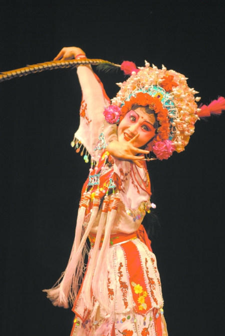 下午2点演出正式开始,由于是最后一场示范演出,剧场内座无虚席,连过道上都挤满了热情的观众。国家级非物质文化遗产项目代表性传承人任庭芳主演的川剧灯戏《拿虎》,受到了观众的热烈欢迎,引得现场喝彩声和掌声此起彼伏。