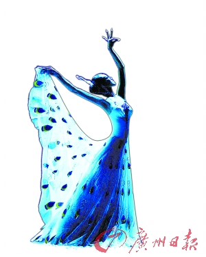 《雀之灵》:这部作品的灵感来源于一个美丽的传说——孔雀公主,传说里有一个美丽的金湖,金湖里有孔雀栖息的地方。有一次我们真的找到了一个非常美的湖,湖边有一棵很大的菩提树,上面结了很多菩提果,那里有很多孔雀,孔雀一个接一个地争着开屏,特别美。不过,作品最终的完成还是靠我20多年的积累,举手投足之间,看似孔雀“迎风挺立”、“跳跃旋转”、“展翅飞翔”,但它远远超过了形态模拟,而是“孔雀”灵与肉的交融、呈现。