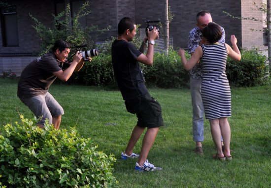 时间很紧,一天之内,老锣重新编配《小河淌水》,他选择两个汉子击鼓中国大鼓,那是男人的身体和力量,衬托女人的思念和幻想。