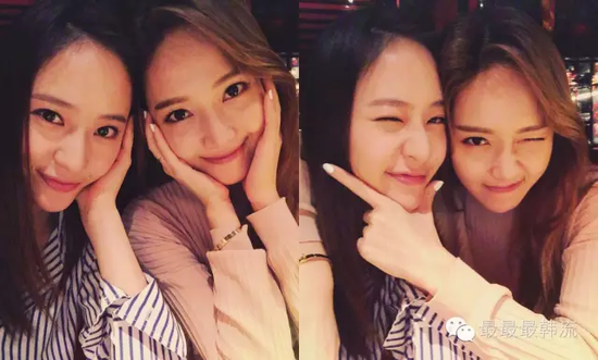 郑秀晶对外高冷,但在最亲近的人面前会露出自己柔软的一面,和郑秀妍在一起总是笑的很开心↓