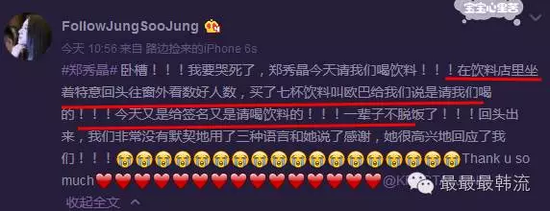 她会在拍戏的时候数清粉丝的人数并请她们喝咖啡↓
