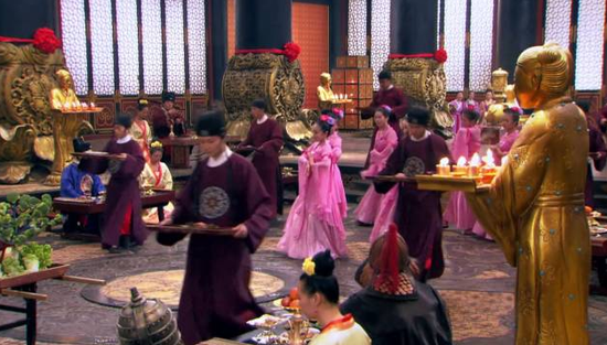 我不知道古代人对美食的要求是怎样的,反正这种菜式不饿三天我是绝对不会吃的好吗?服化道简直就是彻底放弃,完全走的是廉价影楼风。