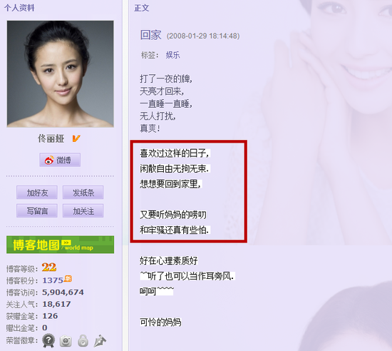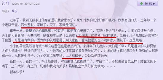 有一篇博文是说喜欢现在无拘无束的日子,不想回家听妈妈的唠叨。