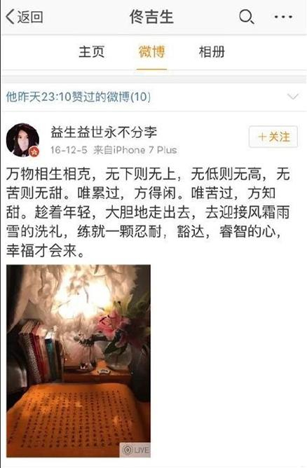 不过今天再去看佟爸爸的微博,已经没有这条赞了,不知道之前是不是手滑才点的。