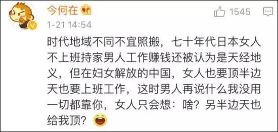 由于这场风波,他当年的一些直男癌言论也被再度翻出,他曾在接受媒体采访时表示,“我觉得一个女的如果答应跟一个男的单独吃饭单独看电影,就是答应跟这个男的上床了”。