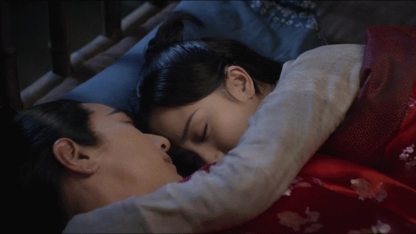 和女主同枕而眠时,表情里是满满的依恋和宠溺: