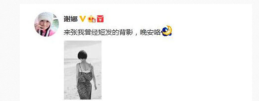 早年谢娜晒出自己的一张旧照和网友道晚安,称“来张我曾经短发的背影,晚安咯”。结果更多的网友把关注点放在她是否怀孕上,猜测其这么晚不睡是因为怀孕了。