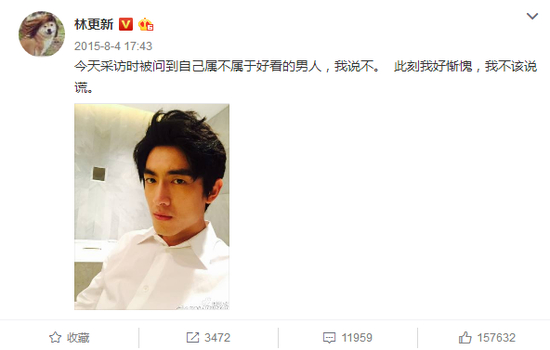 当然林更新对自己的颜值也是很自信的。