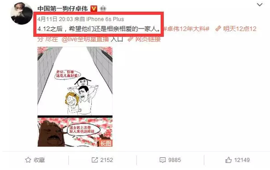 前晚卓伟就在微博发出预告:一副“红杏出墙”的漫画,加上颇有深意的配文,引发无数网民猜测。
