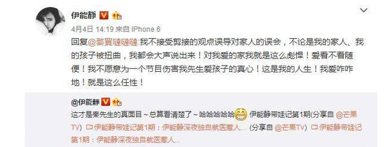 而伊能静自节目开播以来已经多次澄清秦昊真实的表现,更不惜暗怼节目组。