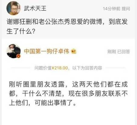 谢娜删除张杰微博事件,双方迟迟都未回应,这不急坏了操心过度的粉丝,高金聘问卓伟:张杰和谢娜到底怎么了?