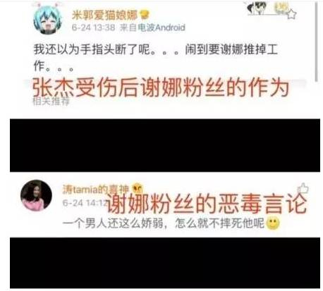 在张杰参加某节目受伤后,谢娜粉丝问其为何没有摔断手指更甚至于诅咒张杰摔死
