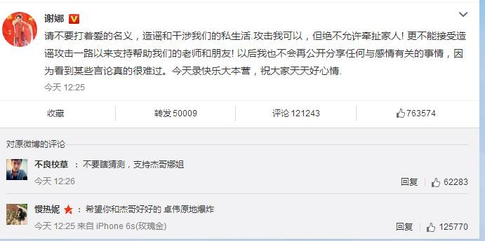 今天中午,谢娜终于发微博回应称: