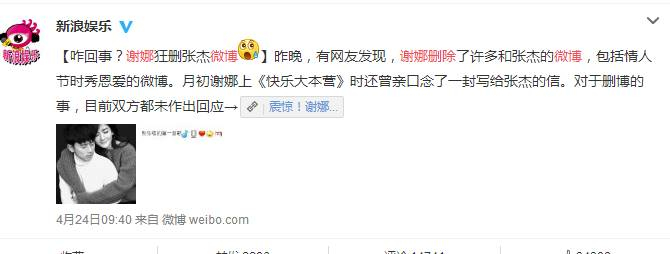 谢娜删除了许多和张杰秀恩爱微博事件持续发酵