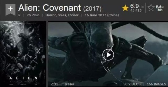 但是在国外评分网站IMDb上,《异形:契约》上映三天后的表现并没有很突出,和《异星觉醒》都是6.9分。
