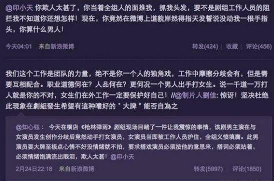 但随后,边潇潇助理微博谴责印小天动手打人!并曝光了事件的过程。女主角边潇潇接着亲下场开撕印小天,怒指其种种“罪行“。