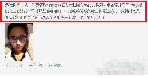 当年还在上大学的杨紫,在微博上写下一段关于“朋友”的感想,也貌似是在评价这个事件?字里行间两肋插刀,落井下石,真正的朋友,称兄道弟等关键词,似乎都意有所指。