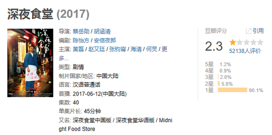 赵又廷的整容室演技为颓势中的《深夜食堂》赢了1万多个赞和部分观众回升的信心,可是《深夜食堂》的豆瓣评分依然是2.3分。