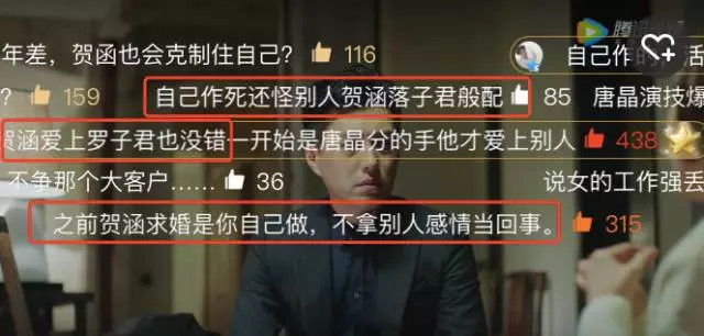 但是这么优秀的唐晶居然还能被找出各种理由来diss,好证明贺涵和子君的爱无比光荣伟大正确,我也是非常服气编剧的。
