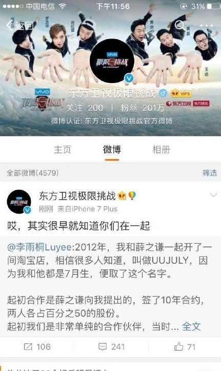 不过引发网民关注的还有极限挑战官方微博秒删的这条微博:哎其实很早就知道你们在一起。