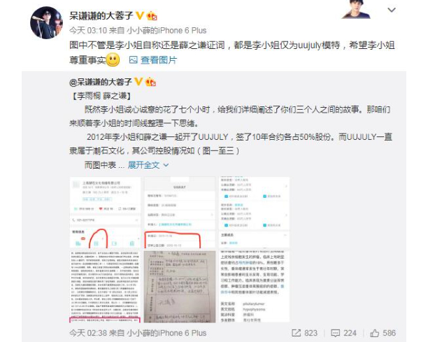对于李雨桐的爆料,不少网友质疑其要发新歌了蹭热度,而且没有证据、爆料时间线混乱。对此,李雨桐好友,网红张大奕和湾湾发声力挺。有网友称李雨桐当初和薛之谦火锅店的合伙人有一腿,在薛之谦离婚前还有个韩国男朋友,张大奕回复:“这个韩国男朋友,是umi和薛分手很久后谈的男朋友,我们都知道的。”