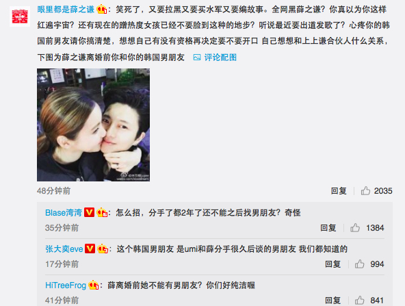 有网民质疑,当初和薛之谦火锅店的合伙人有一腿,在薛之谦离婚前还有个韩国男朋友。