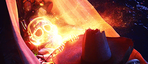 皮克斯并没有简单滥用这些异国文化符号,而是用强大的电脑动画技术,创造了一个以柔和的黄色为主色调的亡灵世界,骷髅们在亡灵世界载歌载舞,创造了一个观众从未见过的色彩斑斓的亡灵世界。