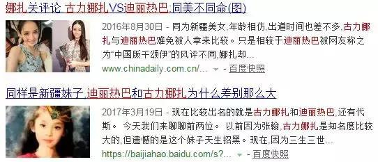 而且嘉行是真的很喜欢发通稿,在热巴渐渐被观众熟知后,与她定位类似、路线相撞、知名度更高的古力娜扎开始出现各种问题,在陆续经历过公布恋情、不雅照事件和综艺上痛哭之后,娜扎人气下滑,当时网上一水儿的通稿落脚点全是同为92年的新疆小花,两人的际遇怎么相差这么大。也正是那段时间,迪丽热巴摆脱了娜扎的阴影,火速反超,两人渐渐拉开了差距。