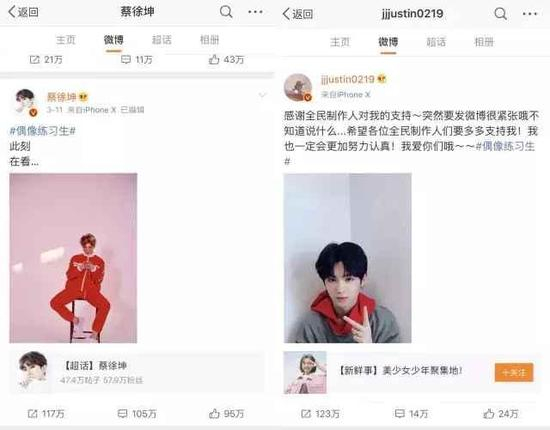 但打开蔡徐坤、Justin的微博,能很容易地看到动辄上百万转发、评论的微博。
