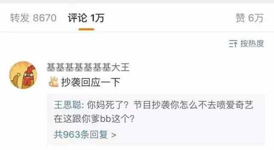 在决赛结果公布后,有网友去香蕉娱乐大boss王思聪微博下求解释,被国民老公毫不留情怼了回去。