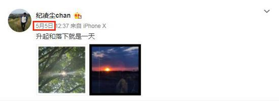 但就在这个抒情句后不久,就被网友爆出5月5日,他和王艺几乎同时在12点37分发博。而且纪凌尘晒出的风景照,女生侧影所穿上衣似乎与王艺当天所穿上衣是同一件,“两人被曝出轨事件”好像又增添实锤了。