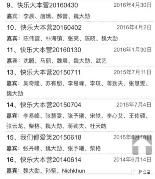 而且不数不知道,一数真的吓一跳,据凤姐的不完全统计,魏大勋从2014年到今年,三年的时间里居然上过至少九次的《快乐大本营》!