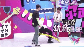 在参加两个人的节目时还很幼稚的在两个人之间画三八线哈哈哈~