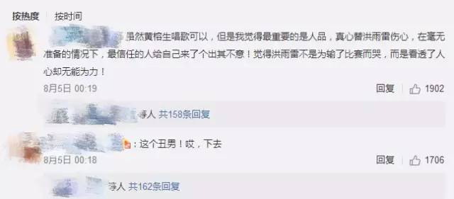 而上周之后,黄榕生的口碑发生了惊天大逆转,因为出现了第二次更大规模的撕逼。黄榕生作为踢馆选手参加了踢馆赛,在第二轮选择PK对象的时候,选择了年纪较小、性格软弱害羞的洪雨雷。洪雨雷之前一直把黄当做自己的老师——